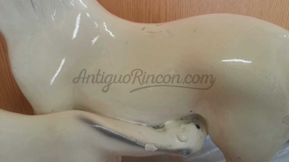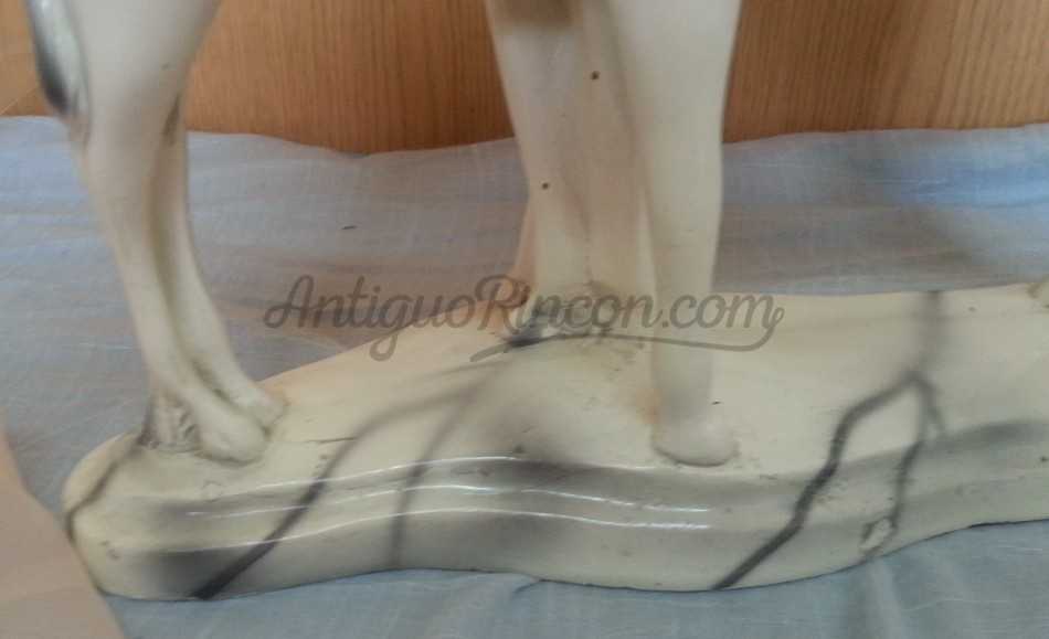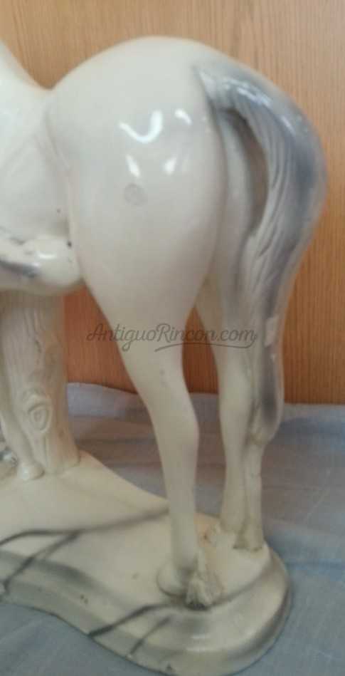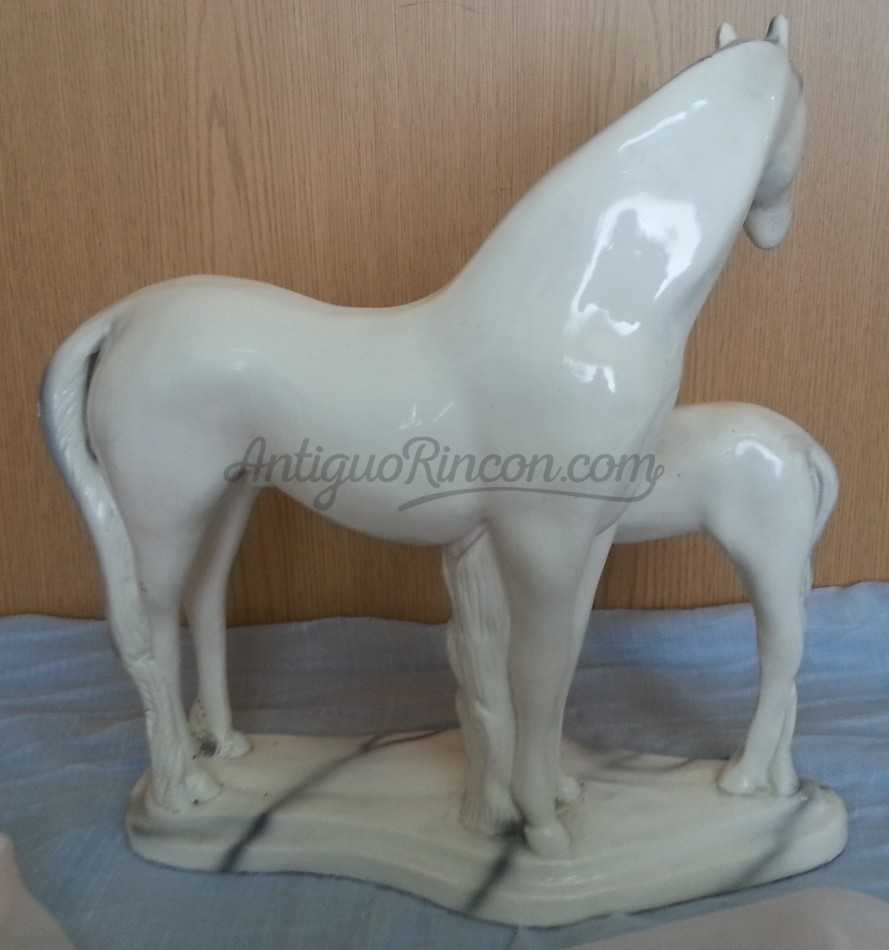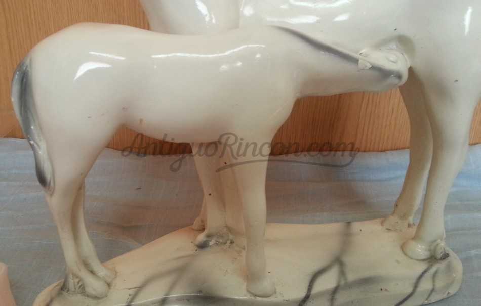 Preciosa escultura en cerámica representando a una yegua amamantando a su cría.