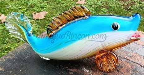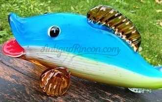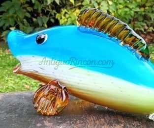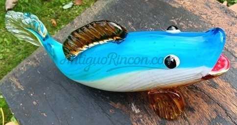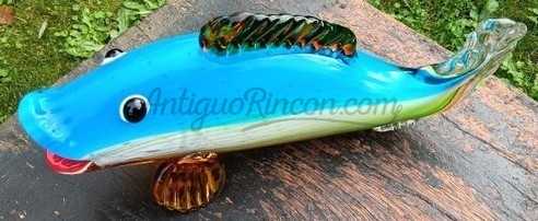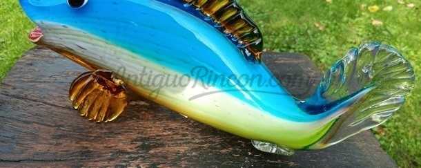 Pez de vidrio multicolor al estilo Murano de gran tamaño. Siglo XXI.