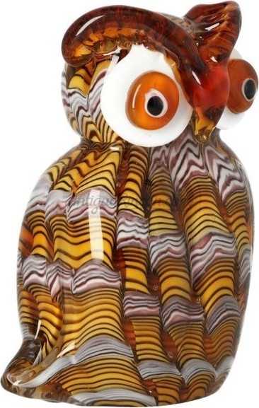 Hermosa escultura estilo Murano de un colorido y simpático búho.