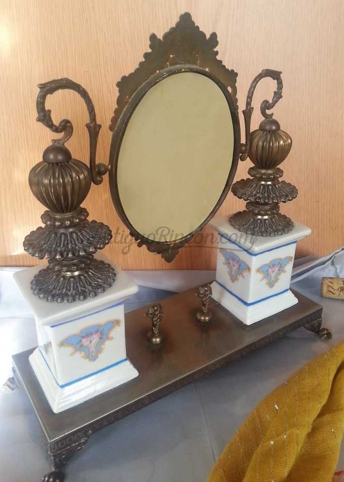Muchos detalles tiene este tocador fabricado aproximadamente en los años 30. Se nota el paso del tiempo pero en general se encuentra en buen estado.