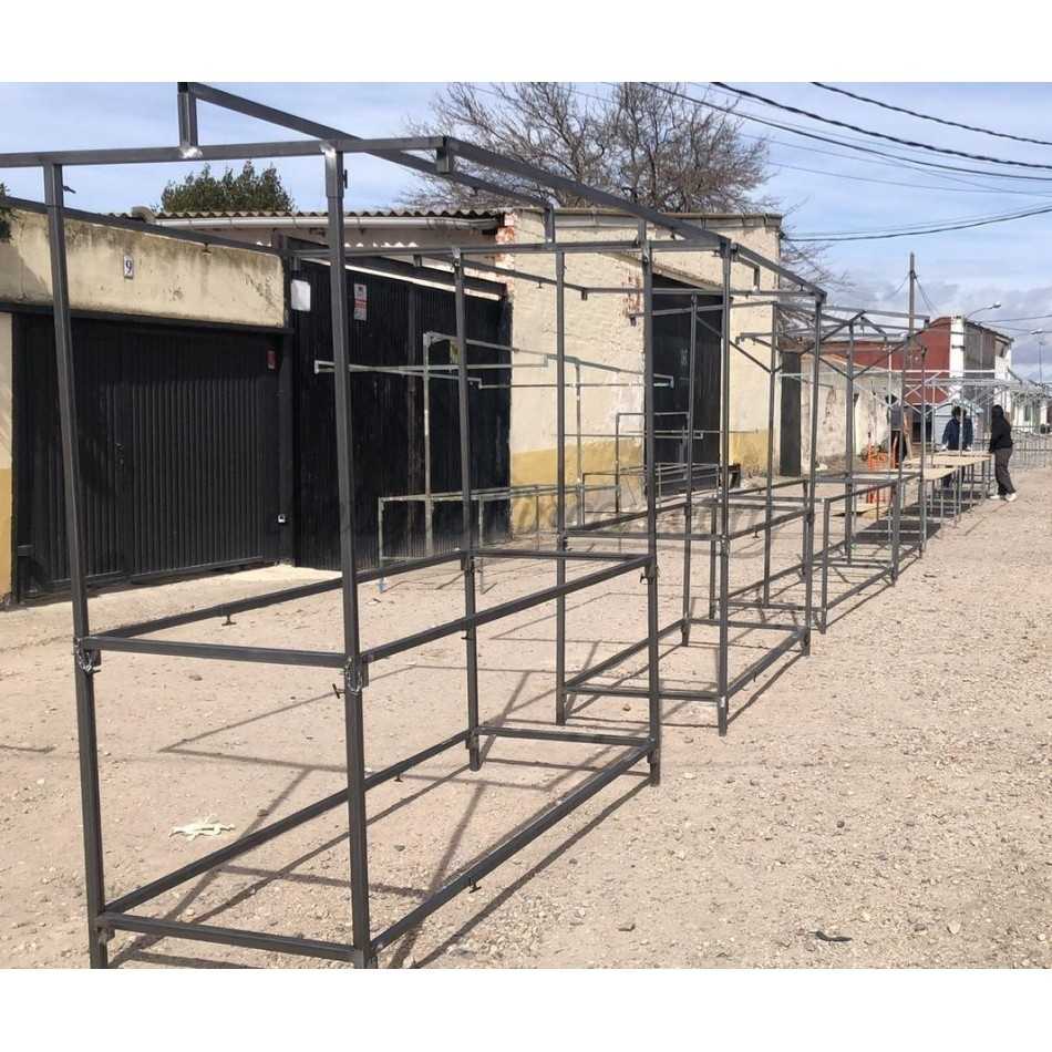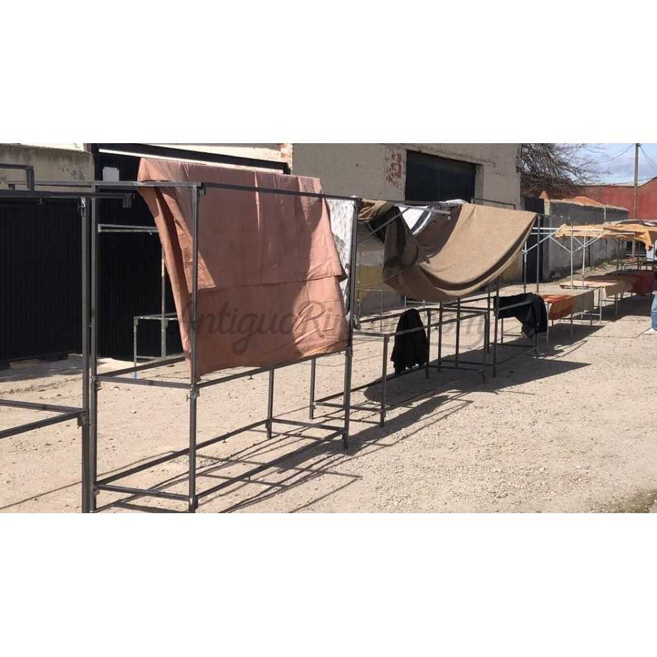 Se trata de puestos de mercadillo ambulante ya que son desmontables totalmente para poder ser transportados de un lugar a otro. Incluyen también sus tableros de aglomerado para exponer los objetos.