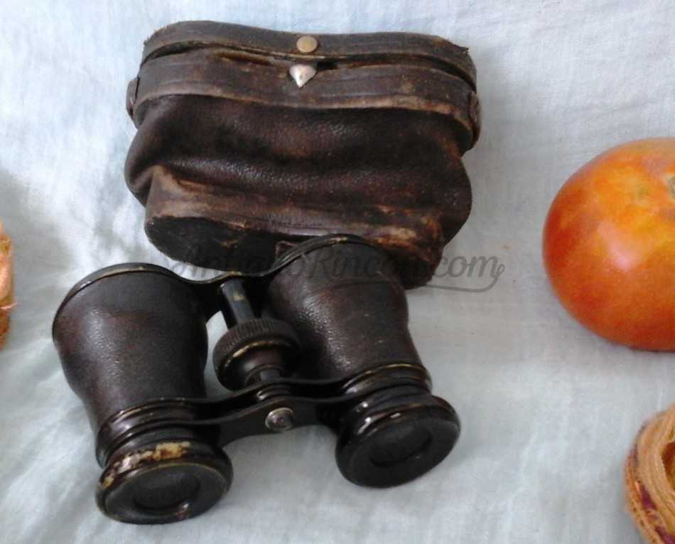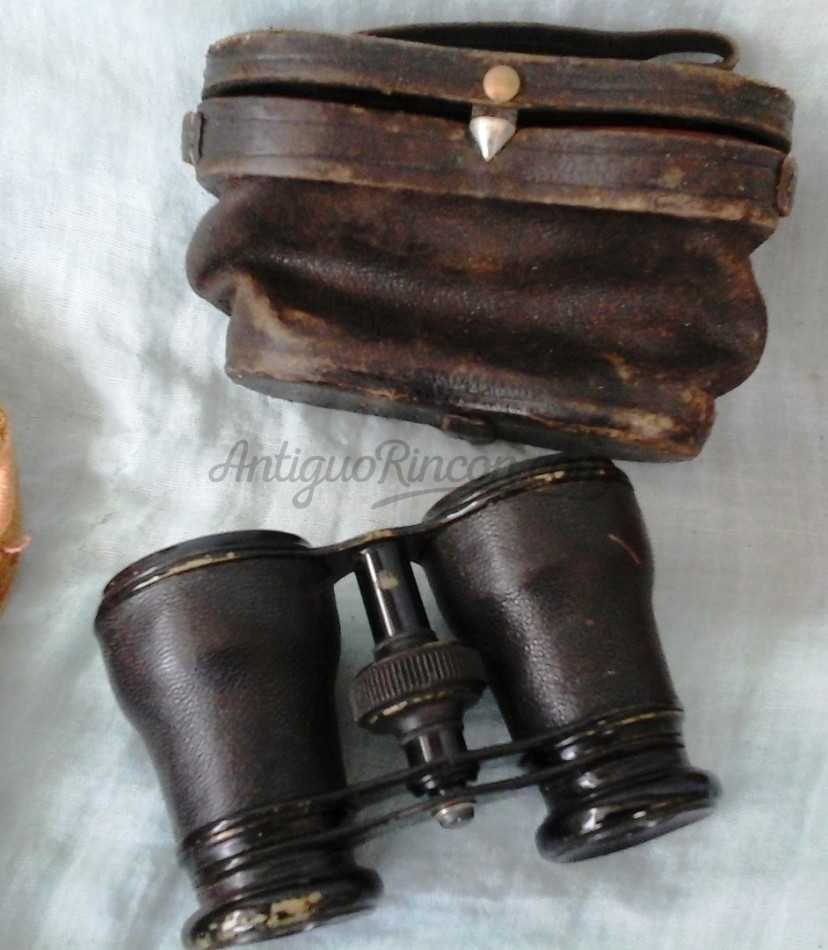 Con su estuche original en cuero. Funcionando. Se notan los años pasados por estos binoculares. Origen alemán.