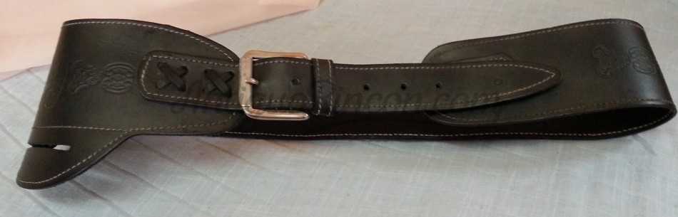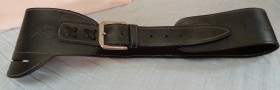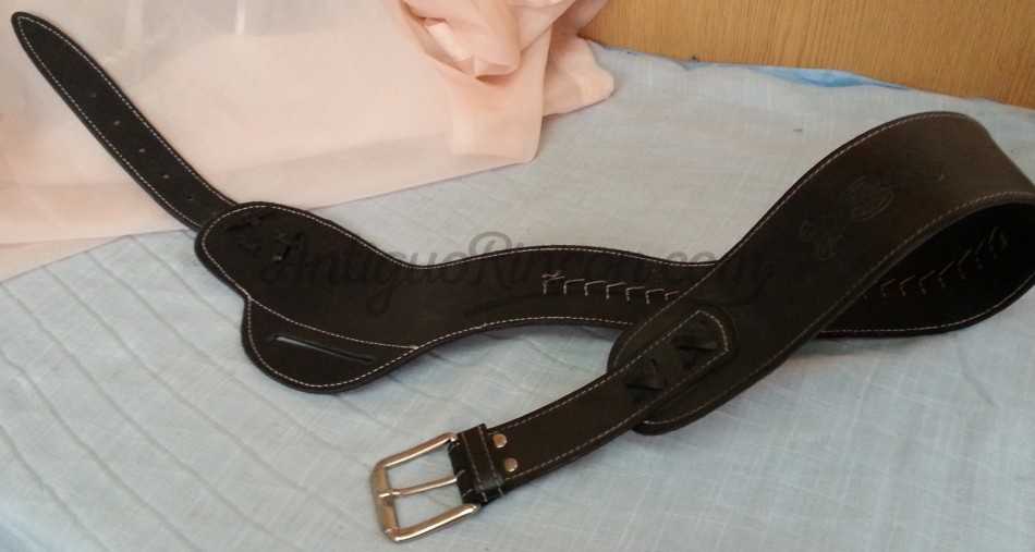 Canana en cuero con balas de atrezzo. Fabricada por artesano guarnicionero. Se encuentra en perfecto estado.