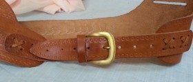 Canana en cuero con balas de atrezzo. Fabricada por artesano guarnicionero. Se encuentra en perfecto estado.