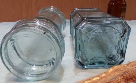 Pareja de aceiteras en vidrio. Conjunto muy bonito, como puede apreciarse en las fotografías.