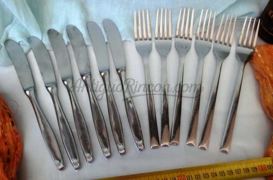 Conjunto de cubiertos a juego de 6 tenedores y 6 cuchillos.