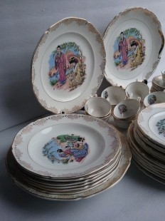 Magnífica decoración de geishas japonesas con multitud de representaciones.