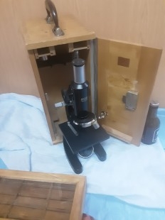 Microscopio antiguo en muy buen estado. Conserva su caja de madera original.