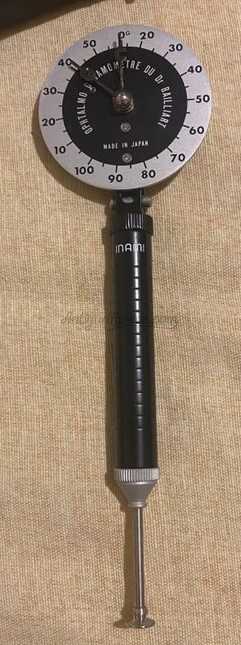 Consiste en un pistón de muelle que hace avanzar un tornillo largo que acciona una aguja a lo largo de una escala graduada. Una segunda aguja es empujada contra la primera y registra la presión.