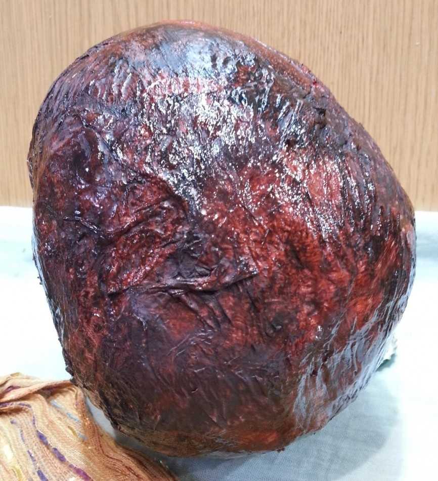 Cabeza de ser humano. Réplica muy realista. Sangrante y en descomposición.