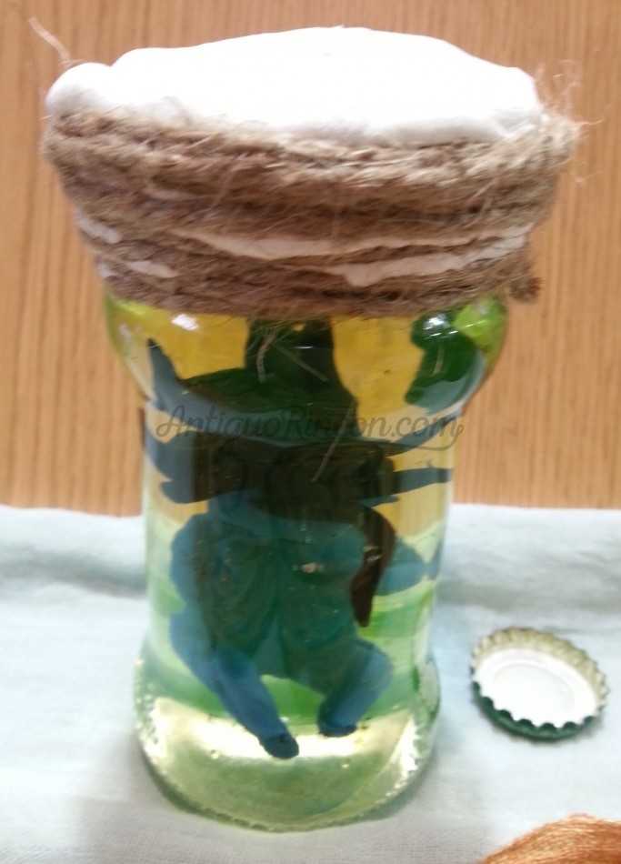 Medusa infantil azul en tarro de vidrio. Figura artesanal fabricada en arcillas poliméricas y pintado a mano.