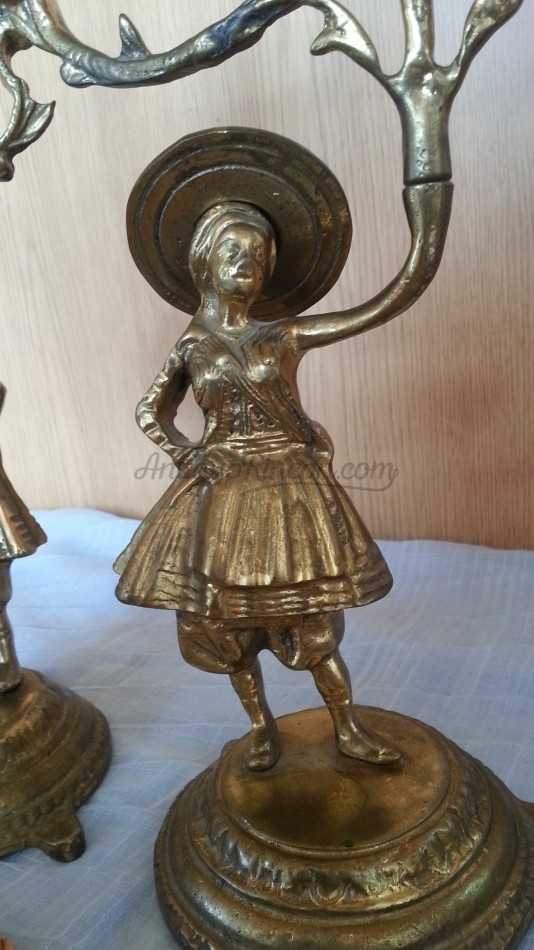 Preciosos Candelabros de los años 70 en perfecto estado y de calidad. Esculturas femeninas en bronce sujetando tres brazos del candelabro.
