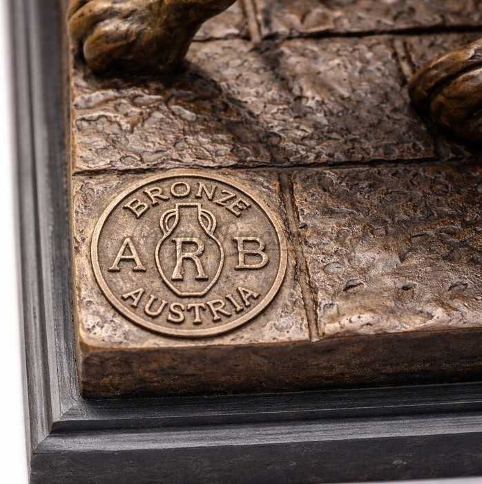 Escultura en bronce con pedestal de mármol representando a Cleopatra encadenada a su pantera. Arte realista.