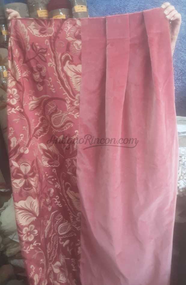 Gran cortina de color granate en buen estado general.