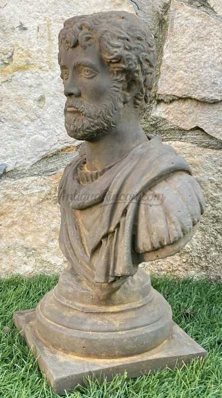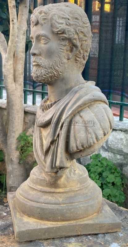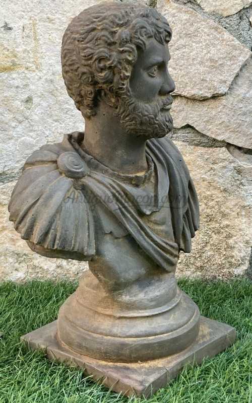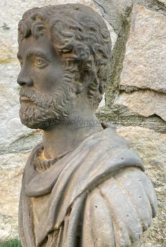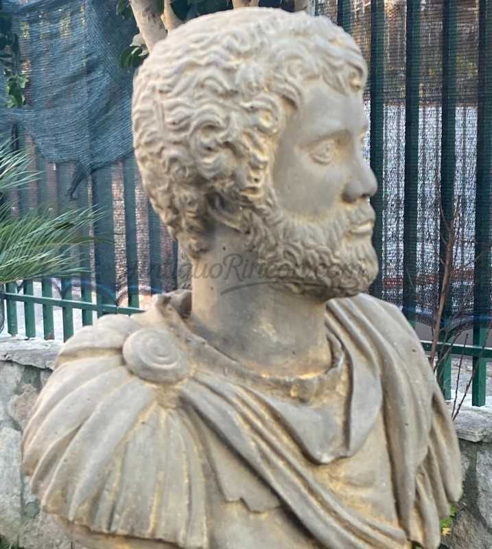 Busto romano de Adriano sobre una base de mármol blanco, mármol recompuesto con vetas de petrificación, peso específico como la piedra, materiales lisos no polvo, inmune a ambientes externos, (sin yeso y polvo) sin signos de rotura pero signos de época.
