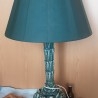 Vieja lámpara de mesa construido su mástil en cerámica decorada. Se notan los años pasados pero se conserva esta lámpara en muy buen estado general. Fuerte y pesada.