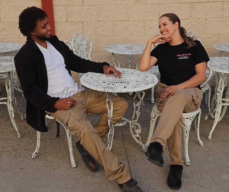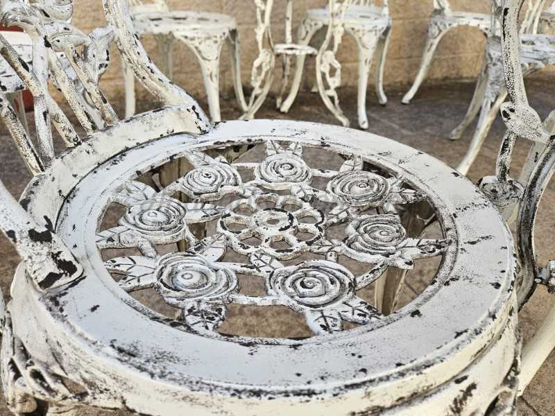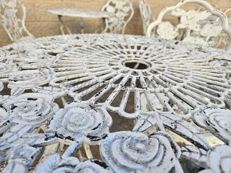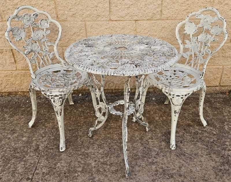 El juego de sillas y mesa bistró está hecho de aluminio fundido de muy buena calidad, que es resistente a la intemperie y muy duradero.