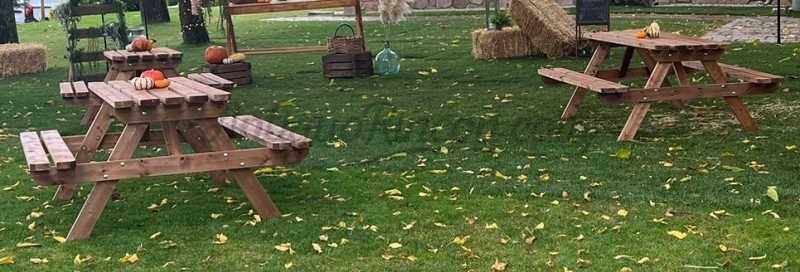 Disponemos de varios conjuntos de mesas de campo y picnic.