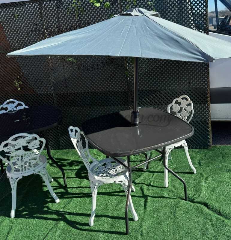 Disponemos de varias mesas de jardín y terraza en alquiler para eventos e industria audiovisual.