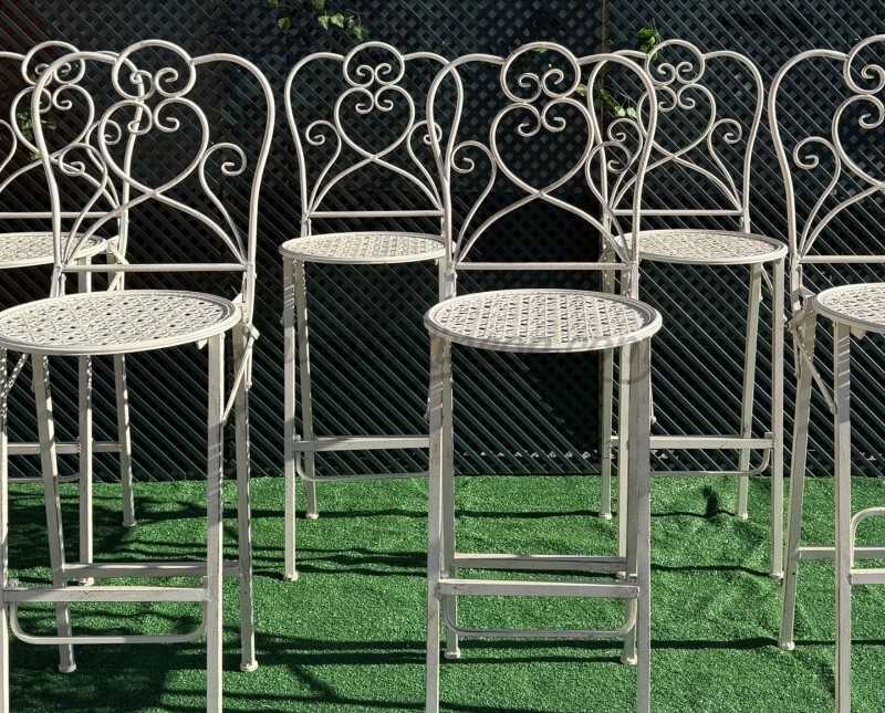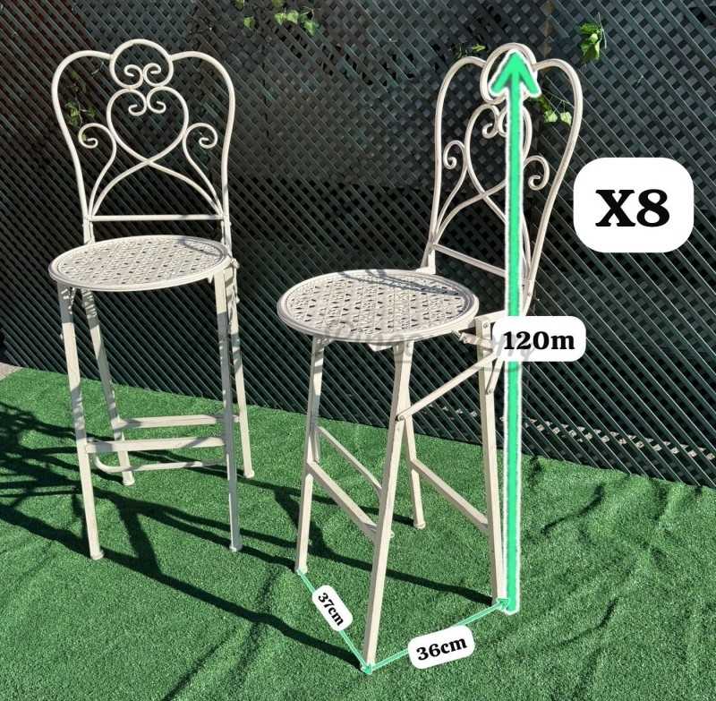 Alquiler de conjuntos de taburetes y sillas altas de estilos diferentes y para varias utilidades en rodajes e industria audiovisual.