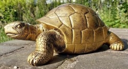Curiosa figura de una tortuga. Fabricada en resina y dorada.