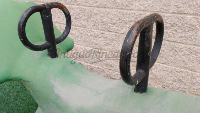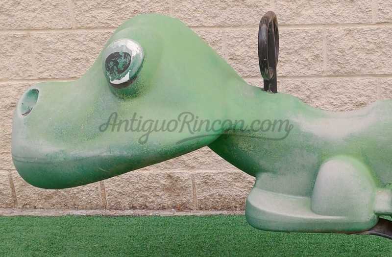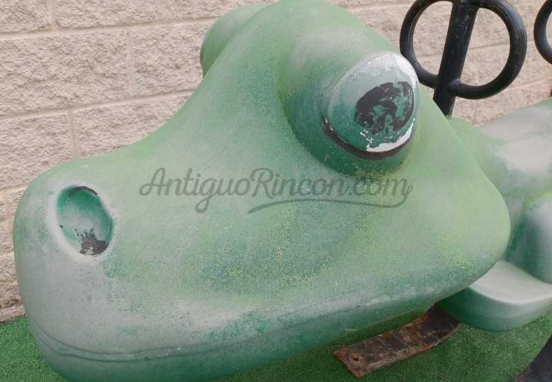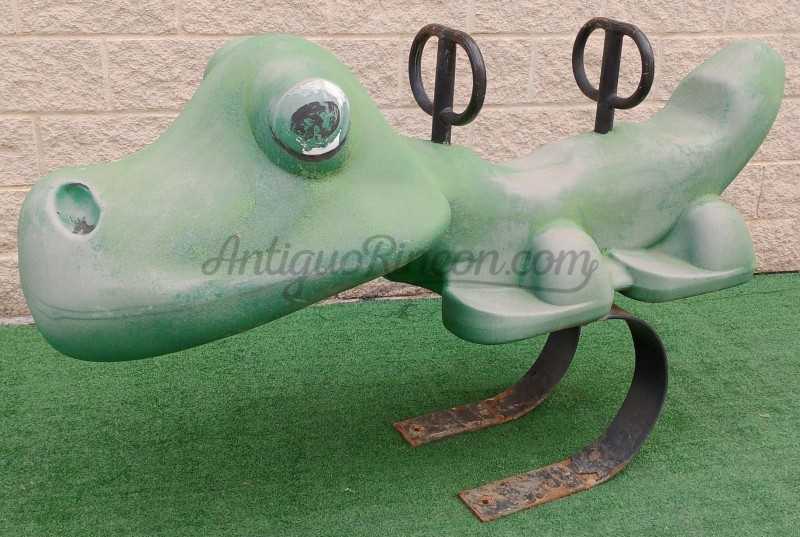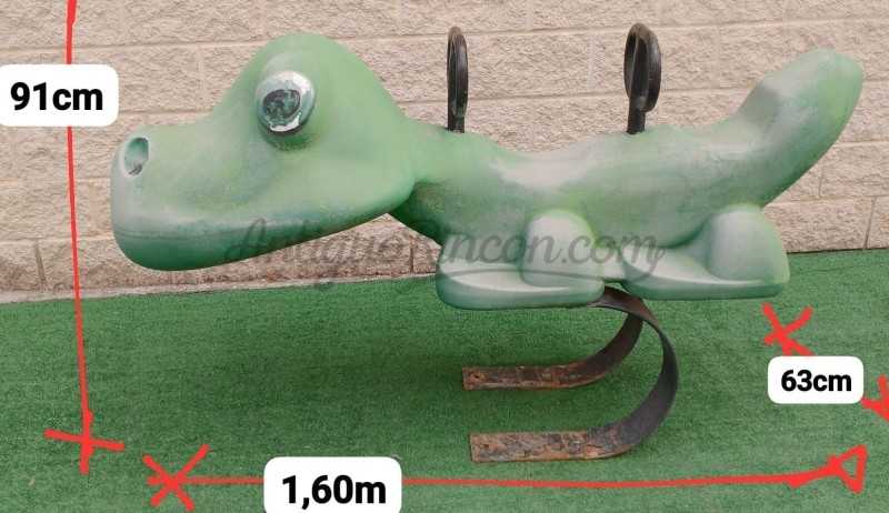 Cocodrilo de tiovivo fabricado en los años 90. Fibra de vidrio, plástico y metal.