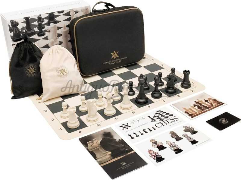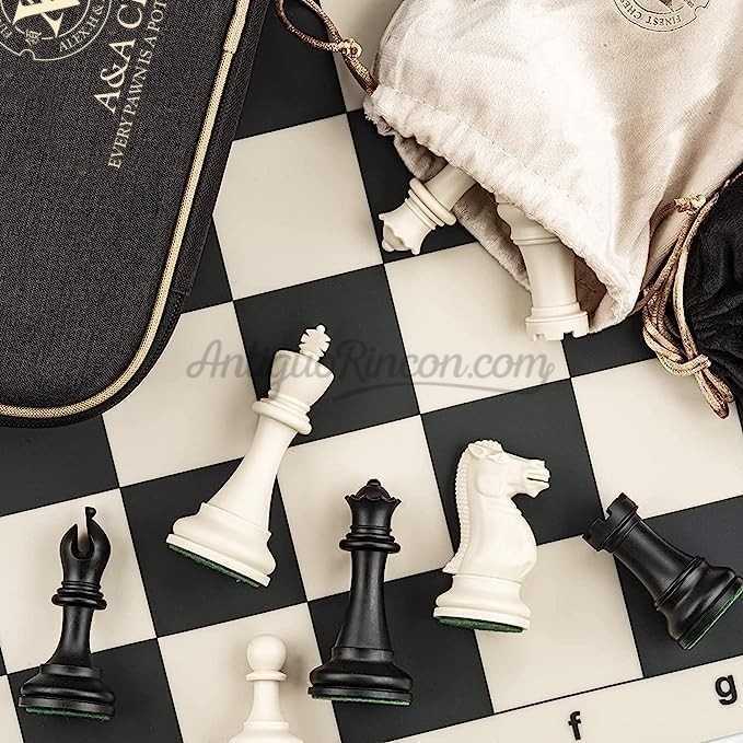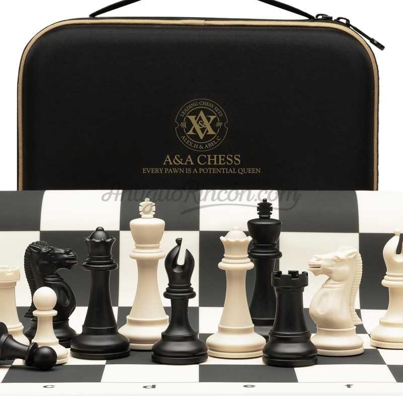 El juego de ajedrez de A&A viene en tamaño estándar de torneo e incluye un tablero de ajedrez de silicona de 50 cm * 50 cm, un juego de piezas de peso cuádruple.