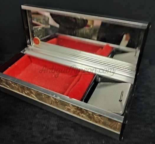 Curioso y precioso cofre nacarado. Perfecto estado general. Tapa plateada con agarradera en forma de paloma.