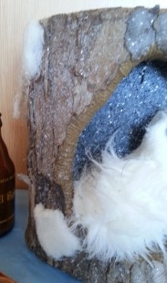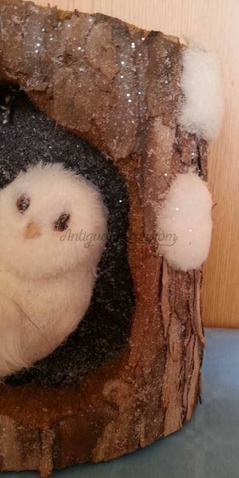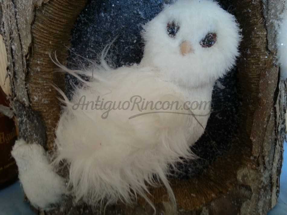 Preciosa figura de decoración fabricada en cartón prensado, pluma sintética y purpurina.
