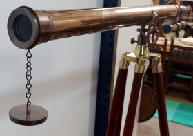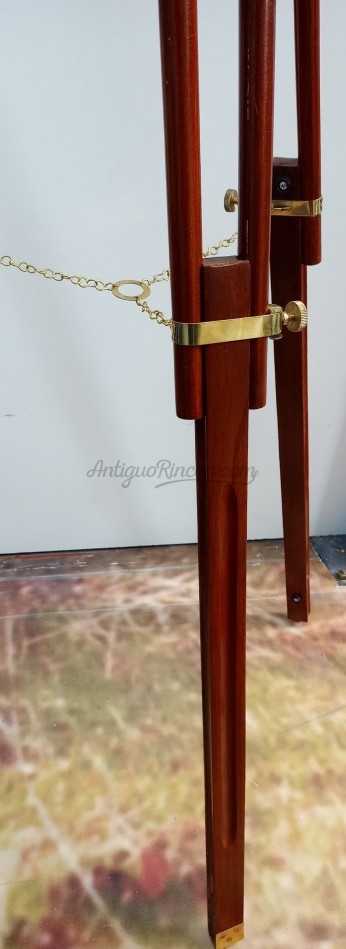 Preciosa pieza de colección este telescopio naval con trípode extensible en madera y cuerpo de latón dorado envejecido. Totalmente funcional.