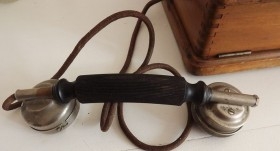 Este teléfono original de los años 20 se modificó en los años 30 incluyendo un dial para que pudiera hacer también funciones como centralita telefónica. Magnífica pieza de colección. Buen estado general aunque se notan los signos de losaños pasados.